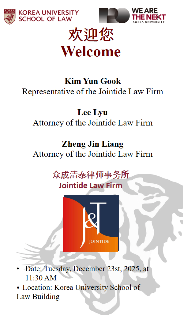 | 제목 | 중국 중성청태로펌 고려대학교 법학전문대학원 방문 |