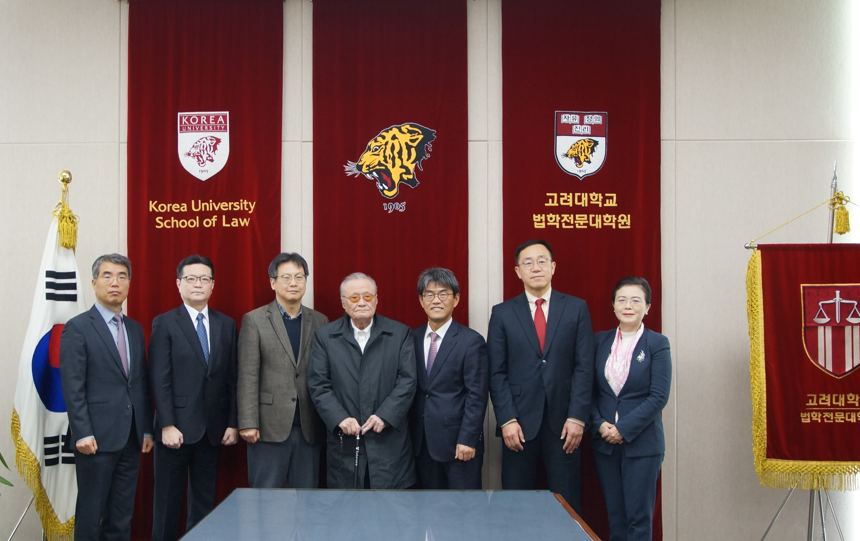 김진하 교우(고법 54, 담산문화원 이사장)께서 우리 로스쿨을 방문하셨습니다. 이번 방문은 법전원 장학금으로 1억 원을 쾌척해 주신 교우님께 감사의 마음을 전하고자 마련된 본교 기부식 직후에 이루어졌습니다.