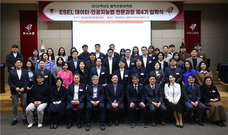우리 로스쿨은 4월 8일 CJ 법학관 베리타스홀에서 데이터·인공지능법 전문과정(주임교수 김상중, 이성엽) 4기 입학식을 개최했다. 올해 9월까지 진행될 위의 과정에는 김앤장 법률사무소를 포함한 국내 주요 로펌 소속 변호사, 삼성전자와 SK텔레콤 및 네이버·쿠팡 등 주요 기업 및 공공기관 소속 변호사와 임원 등 총 45명이 입학하였다.